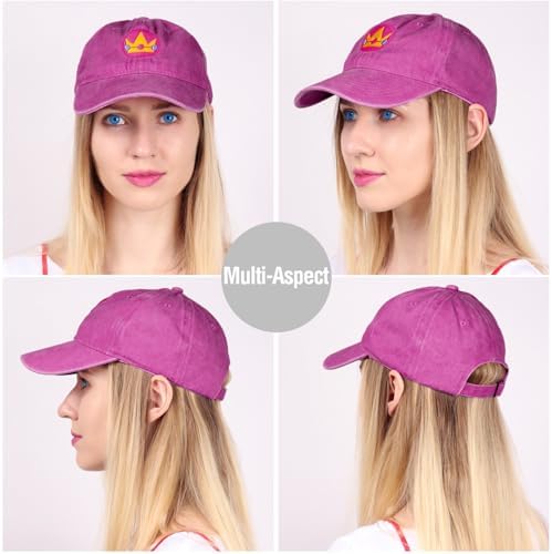 C-ZOFEK Embroidery Peach Hat Washed Denim Magenta Baseball Sun Cap Adjustable for Women
