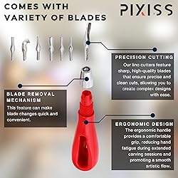 - This bundle is perfect for artists of all skill levels looking to try a new craft or bolster their printmaking experience. Pixiss' stamp making kit is designed for the artist seeking utmost precision and craftsmanship. Each component is designed to provide you with the tools you need to express your vision. Our Lino Stamp Pad are crafted from premium materials to deliver exceptional performance. Each linocut block is smooth, durable, and precisely cut, ensuring clean and crisp impressions every time. With their perfect density and smooth surface, our stamp blocks offer optimal carving control and enable you to create intricate designs with ease. They are compatible with various printing techniques, including rubber stamp carving, linocut, and block printing. Linoleum is an ideal printing rubber for print making materials as it is durable enough to preserve finer details while being easily cut, carved, or pressed. Resilient to bending and less prone to split. Effortlessly carve intricate patterns and textures with our Stamp Carving Tool - the ultimate carving tools for precision and creativity. The ergonomic handle offers a comfortable grip. Included spare blades provide smooth cuts so you can bring your designs to life with exceptional detail. Our Linocut kit is built with components that are user-friendly and suitable for beginners and experts alike. The smooth surfaces of the linoleum rubber carving block and ergonomic handles of the cutters ensure a smooth crafting experience. Whether you're creating custom stamps, carving linocut projects, or simply exploring block printing, our bundle has got you covered. Inspire creativity in a budding artist with this thoughtful gift or utilize our stamp kit to make your own! Carve intricate designs, experiment with different techniques, and bring your ideas to life with this exceptional marriage of creativity and craftsmanship.