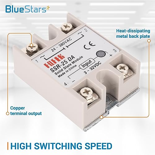 - BlueStars 2pcs SSR-25DA 25A 250V Solid State Relay Alloy Heat Sink