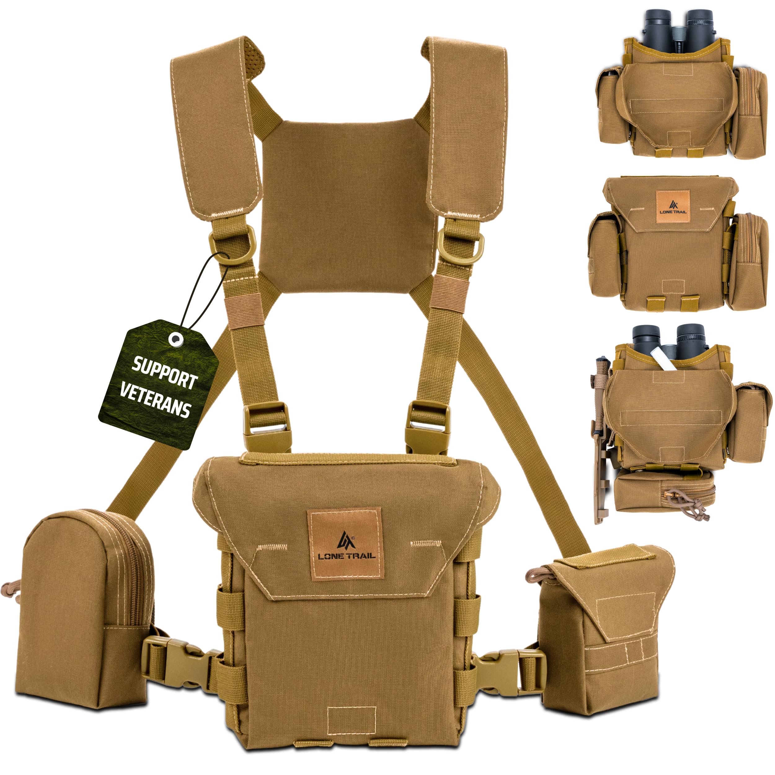 Lone Trail Waterproof Binocular Harness Chest Pack - Lightweight Bino Harness With Rangefinder Pouch | Binocular Case with Silent Magnetic Closure and MOLLE System
