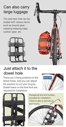 - ・[Maximum load 5kg] [Fixed to dowel hole] There are 3 fixing positions to the dowel hole, and you can adjust the position to suit your bicycle.Dowel holes in the front fork are required for installation.