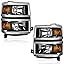 WEELMOTO Headlights Pair 2014-2015 for Chevy Silverado 1500,for 14-15 Chevy Silverado 1500 Headlamp Black Housing Amber Reflector Left+Right Side