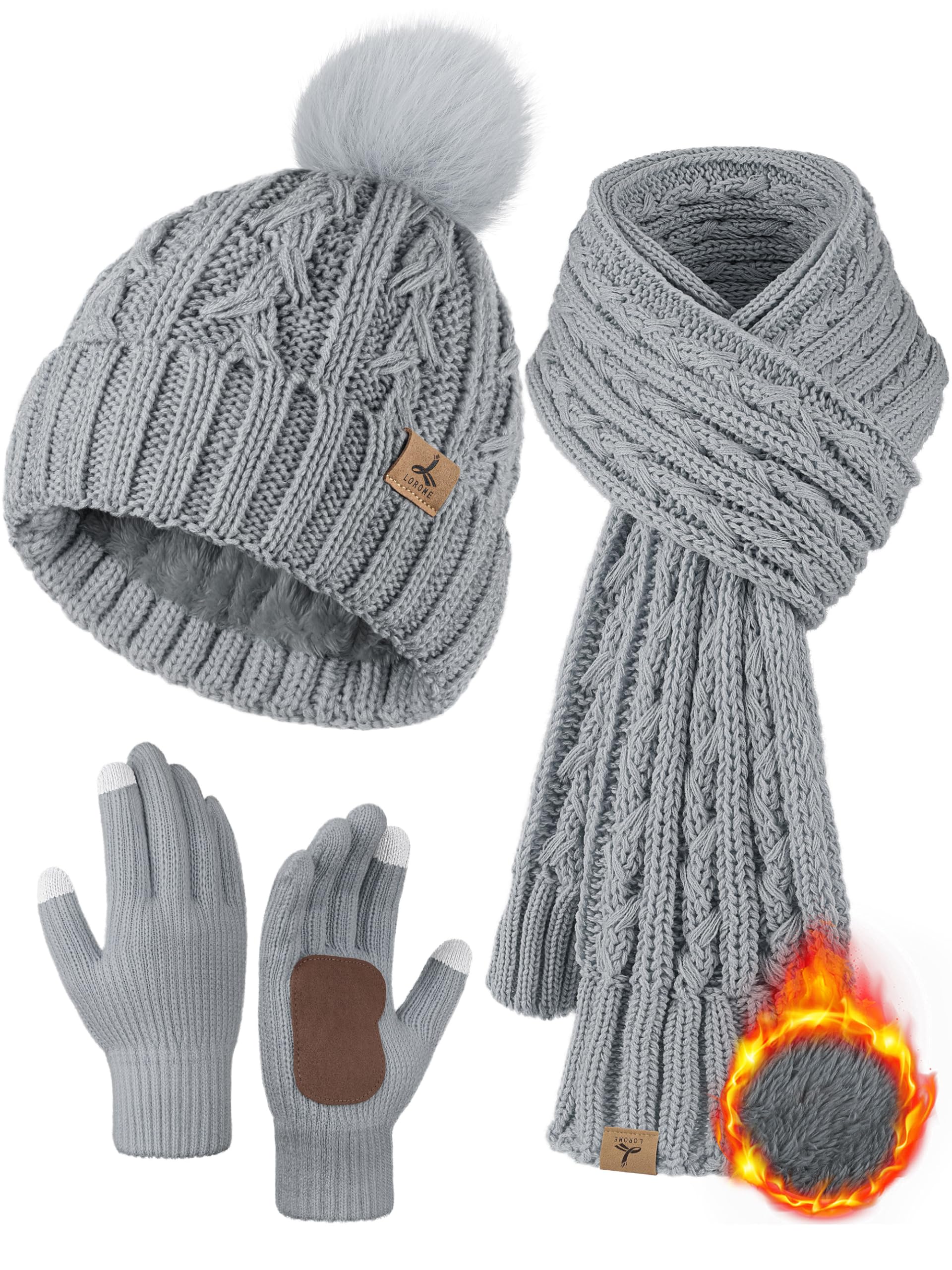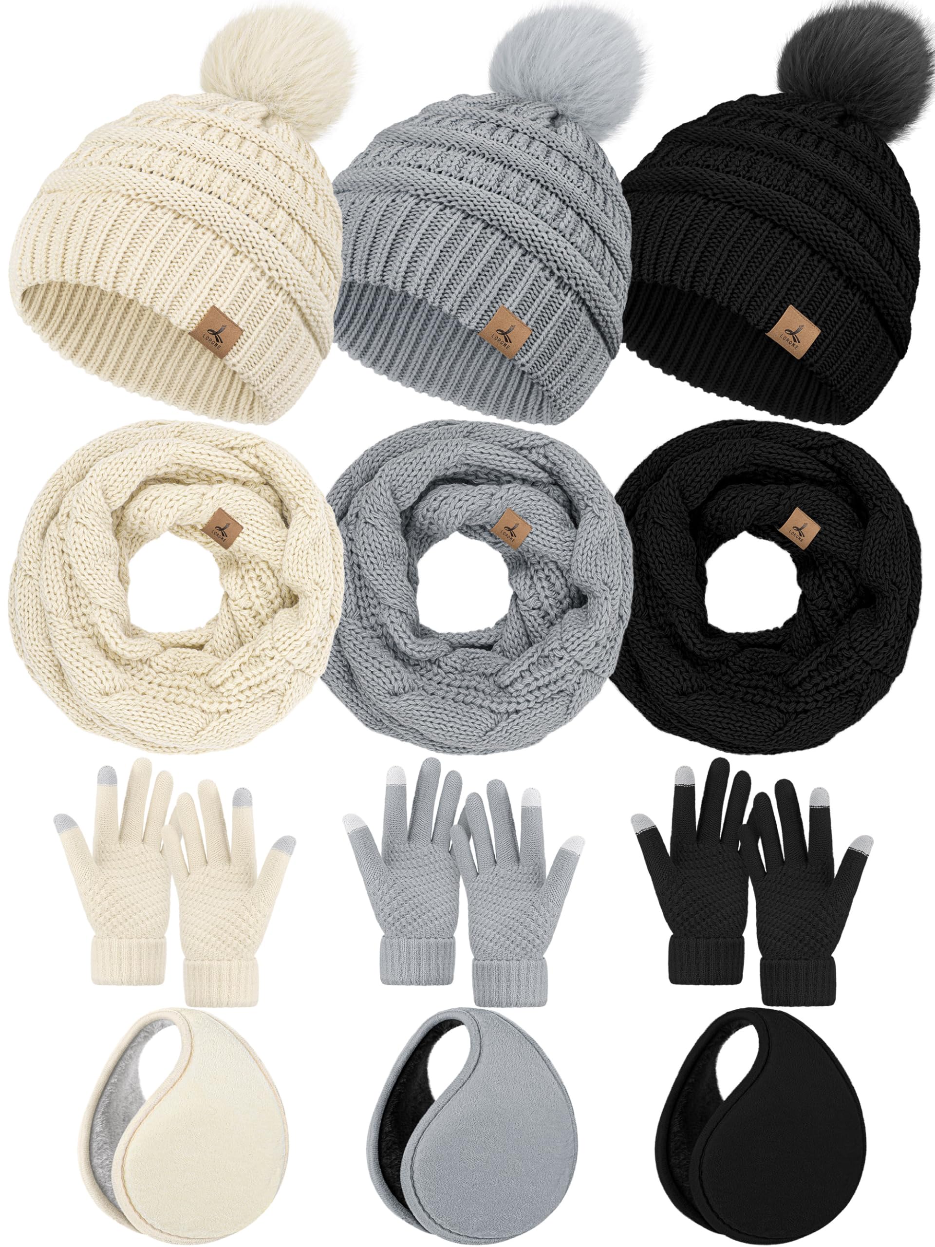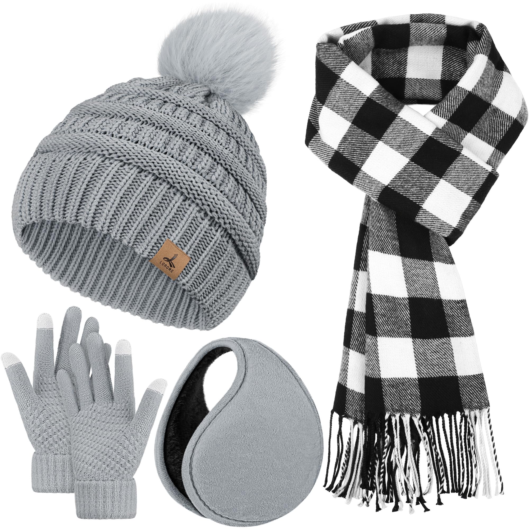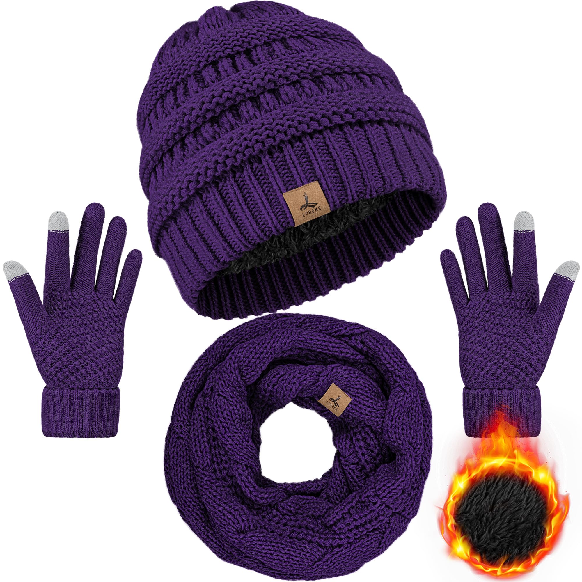 Winter Beanie Hat Scarf Gloves Set, Soft Warm Knit Hat Warm Touchscreen Gloves Neck Warmer Thick Knitted Scarves for Women