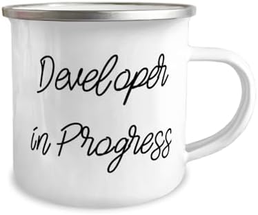 Beautiful Developer Gifts, Developer in Progress, Developer 12oz Camping Mug From Friends, For Men Women, Funny developer mugs, Funny developer tshirts, Funny coder stickers, Funny programmer buttons,