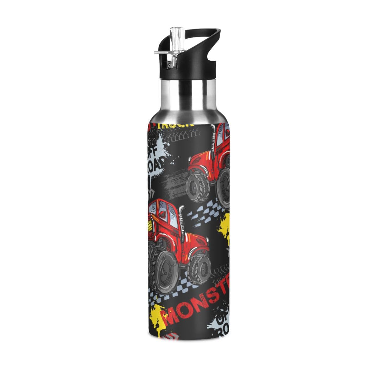 Water Bottle with Straw, Motocross Motorcycle Race Lid Kids Insulated Stainless Steel Water Flask Sports, 20 Oz Hot Cold
