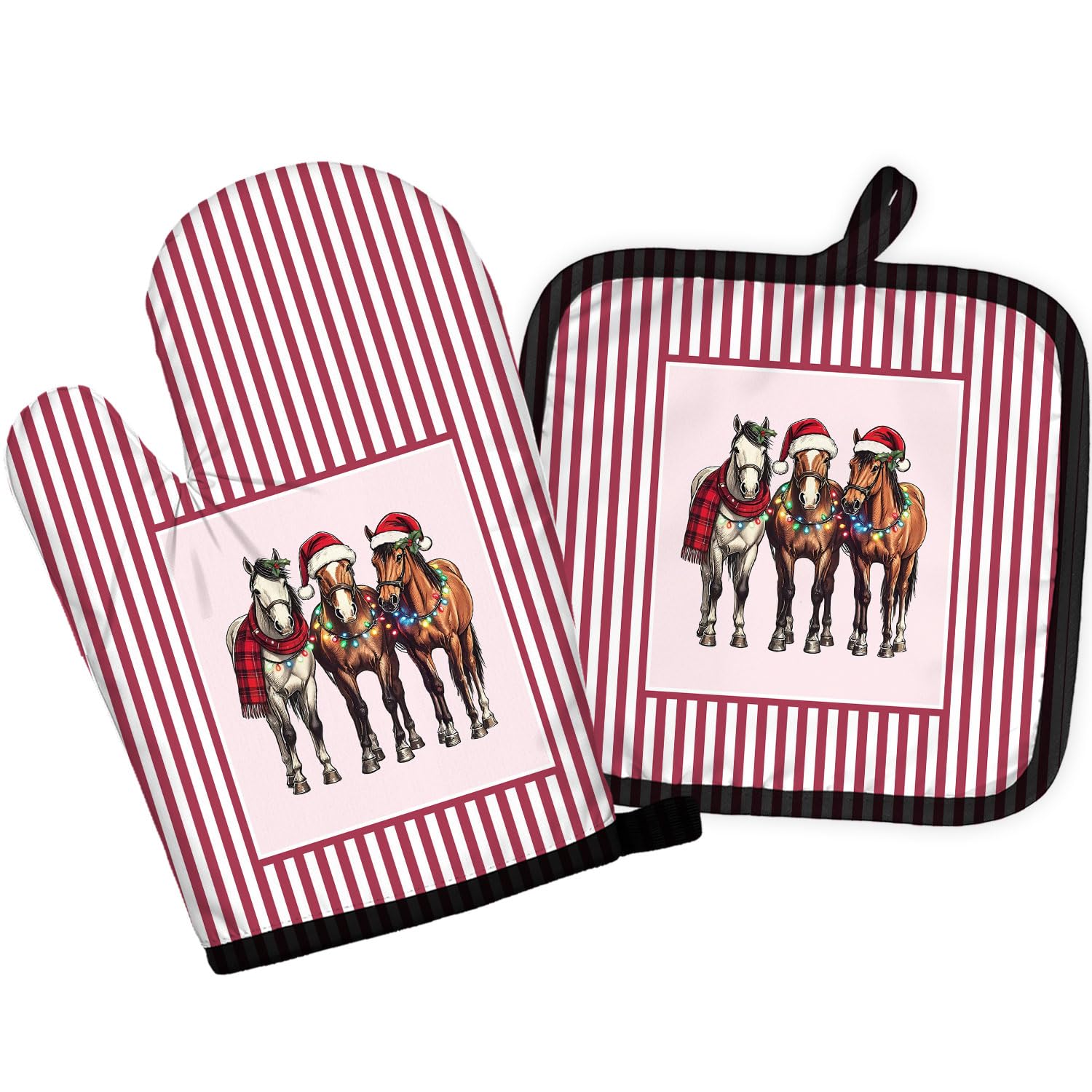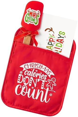 R HORSE 3Pcs Christmas Pot Holder Baking Gift Kit with Silicone Spatula Greeting Card Xmas Funny Heat Resistant Oven Mitt Red Cookie Hot Pad for Xmas Kitchen Gift for Family Friend Colleague Employee