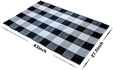 - 【SOFT & DURABLE DESIGN】: Crafted with high-quality cotton, the outdoor rug offers a luxurious softness and comfortable touch. The checkered rug's exquisite hand-woven design showcases the classic black and white check pattern, making it a timeless addition to your decor. Moreover, the use of eco-friendly fabric ensures both style and conscience.