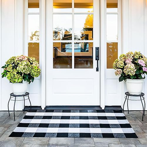 - 【INDOOR OUTDOOR RUG】: Elevate your front door and beyond with the buffalo plaid door mat. This versatile rug is a fantastic decor choice for various spaces like your porch, kitchen, patio, bathroom, laundry, entryway, apartment, living room, and bedroom. Moreover, it makes for an adorable gift option for both families and friends.