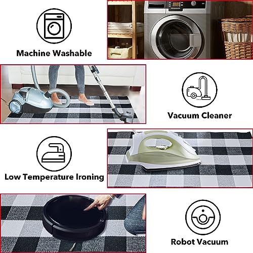 Cotton Buffalo Plaid Rugs 27.5"x43"(2.3'x3.6'),Complete Home Rug Hand-Woven, Indoor/Outdoor Use,Black & White Checkered Rug-Layered Door Mats, Washable for Front Porch, Kitchen, Farmhouse