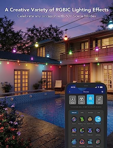 • Festive RGBIC Lighting: Choose from 60 scene modes and 16 million colors to light up house with govee outdoor lights for holiday decorations. Govee outdoor lights with creative DIY Mode and Scene Mode will shine your party.