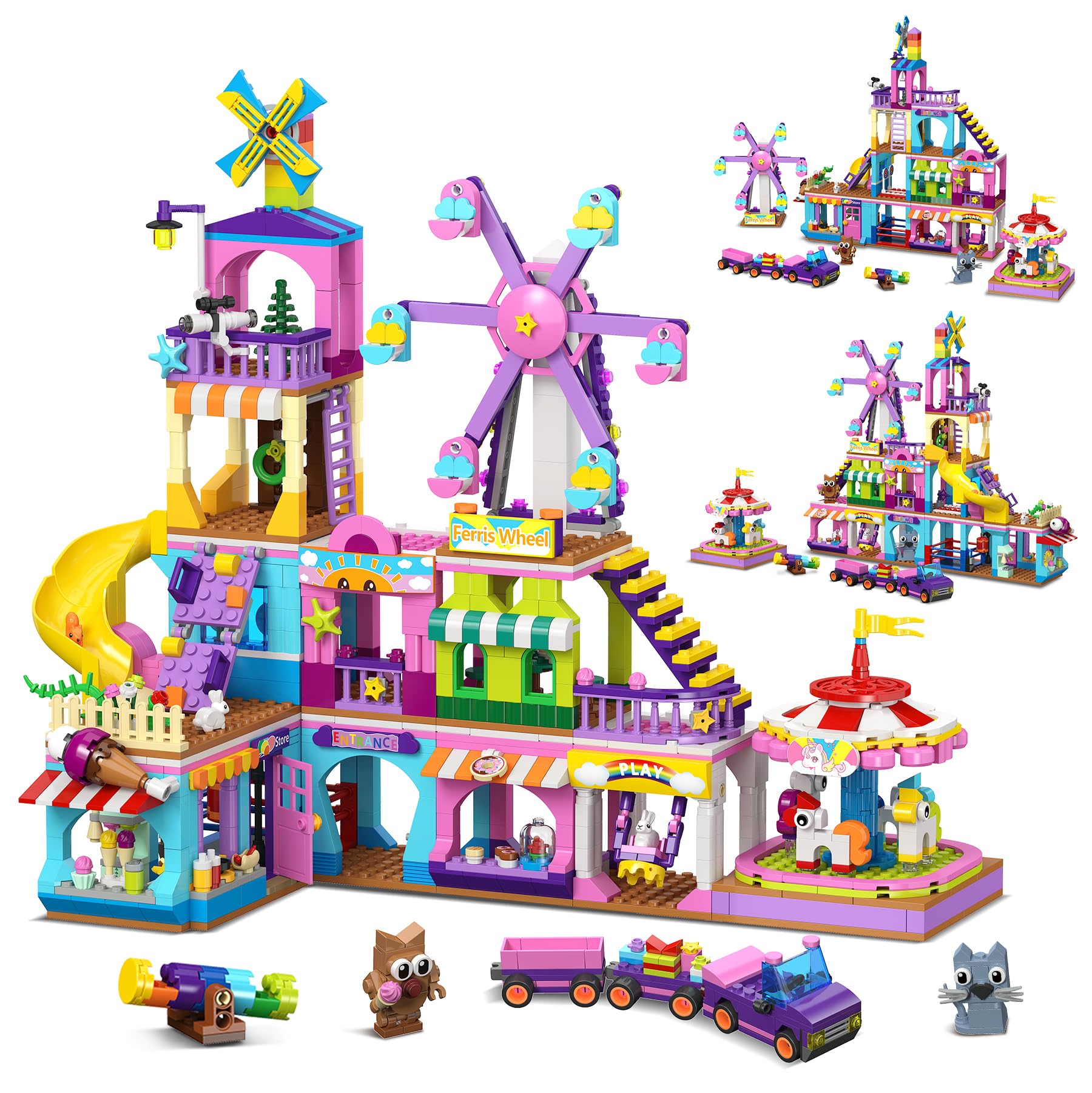 - WONDERFUL DRIVING JOURNEY- This girl's building kit comes with realistic props such as a barbecue grill, slide, swimming ring, outdoor viewing platform and more. Kids can build a friendship bus to get around the city, a camper van to enjoy the natural beauty of the countryside, or a seaside store and paddling in the pool. Let the kids use their endless imagination and embark on an amazing journey with this multi-functional building block playset!