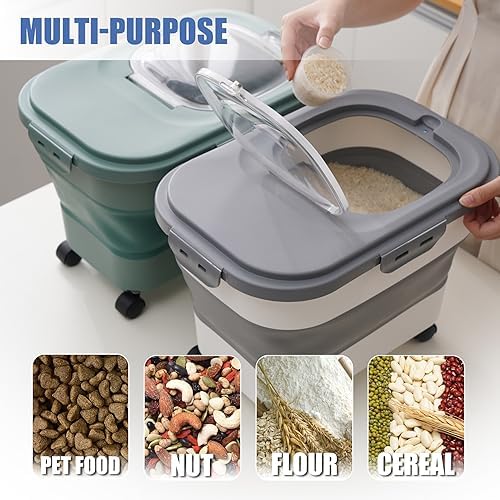 Collapsible Dog Food Storage Container with Lids, Airtight 30 35 Lbs Rice Cereal Flour Sugar Containers Dispenser, Sealable 20 25 Lbs Dog Pet Cat Bird Seed Kitchen Holder Bin Bucket with Rolling Wheel