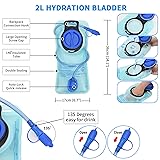 【Adjustable Size & FUNCTIONAL】 Hydration Backpack have fully adjustable shoulder,chest straps and waist adjuster,which helps you easily adjust water backpack size to fit your torso,Teenagers/kids with 27" up to adults (men and women) with 40" chest size,the waist 21"to 33". 【Lightweight&Compact Water Backpack】Hydration Backpack is made of comfortable and waterproof nylon fabric,compact design your feeling is lightwight and stable without any wind resistance when you use it,The hydration pack's bottom also equipped invisible helmet holder pocket ,the shoulder strap is with clip fix bladder. 【Insulated Hydration 】This hiking daypack has an insulation compartment which can hold a 2L Hydration bladder and your drink can be kept cool up to 4 hours in running,cycling biking,hiking,the cycling backpack is equipped with inner bladder fastener will reduce the bladder's bouncing during movement. 【BPA FREE hydration bladder 70 Ounce-2 Liter】Included 2L leakproof and stability hydration bladder,complete with soft high flow bite mouthpiece with easily accessible on/off,valve BPA FREE food grade,test report will be sent to your e-mail.the size of water bladder is perfect offer a nice balance of reasonable weight and bulk while providing a sufficient quantity of water. 【Perfect gear for outdoor Activities】The hydration pack is perfect gear for cycling, camping, running,music festival, rave , kayaking,short trip, walking, mountaineering and ultralight hiking,Best holiday Gift for families and friends who love outdoor sports.
