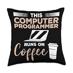 100% Polyester This Computer Programmer Runs On Coffee For A Programmer Coder is perfect for developer coders who love computer programming and software developing and enjoy drinking coffee. 100% spun-polyester fabric Double-sided print Filled with 100% polyester and sewn closed Individually cut and sewn by hand Spot clean/dry clean only