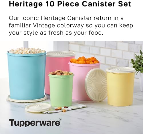 Tupperware Heritage Collection 10 Piece Nested Canister Set in Vintage Colors, Dishwasher Safe and BPA Free (5 Containers, 5 Lids)