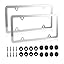 Fashion 4 Holes Slim Polish Mirror License Plate Frames,Stainless Steel License Plate Cover,Weather Proof License Plate Holder(4 Holes Super Slim Silver,2PCS)