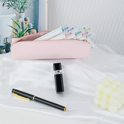iSuperb PU Pencil Case Leather Pen Bag Slim Pencil Pouch Lovely Stationery Bag Portable Cosmetic Bag Zipper Organizer Bag (Pink)
