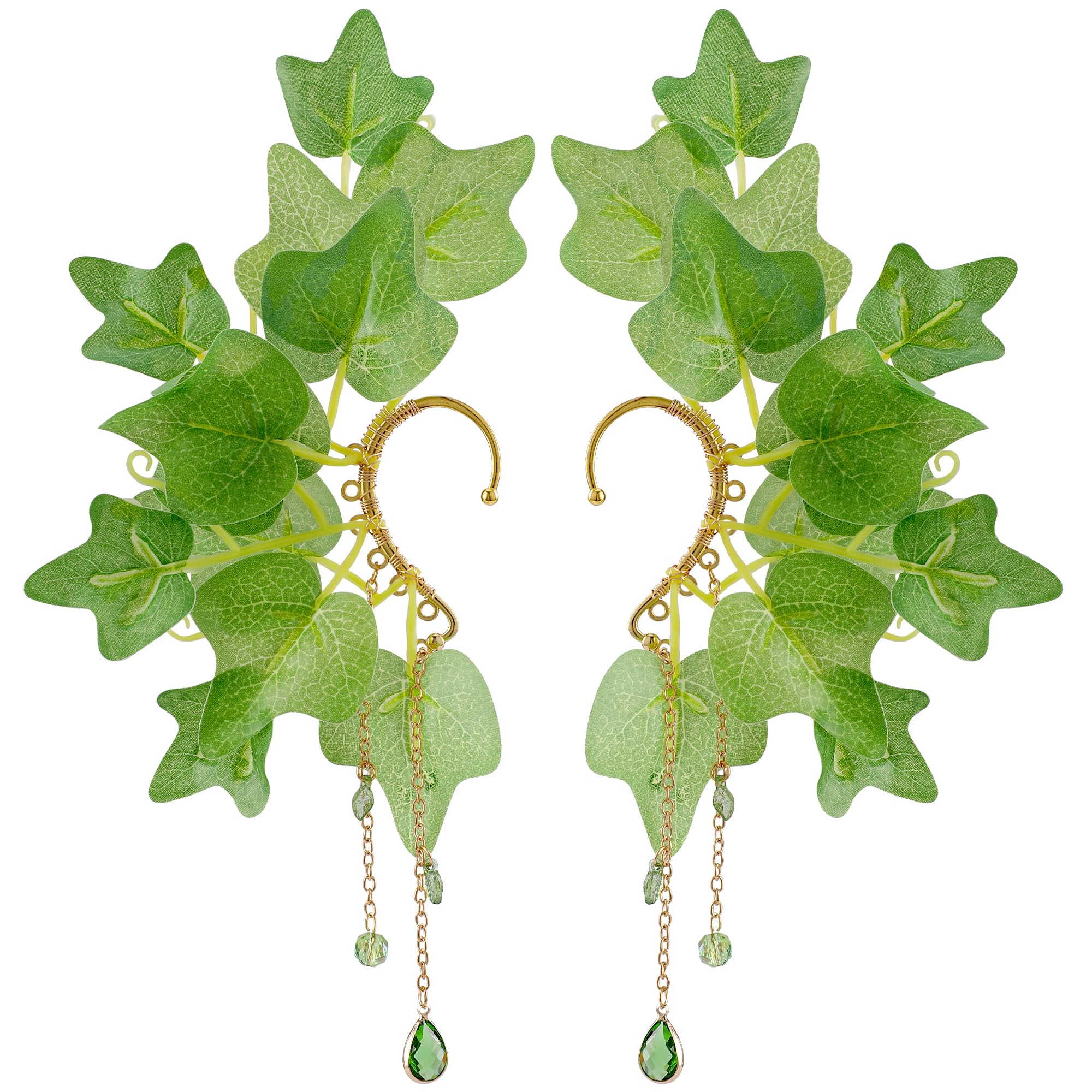FRESHME Elf Ears with Piercings - Handmade Fairy Ears with Gold Butterfly Earrings Cuffs