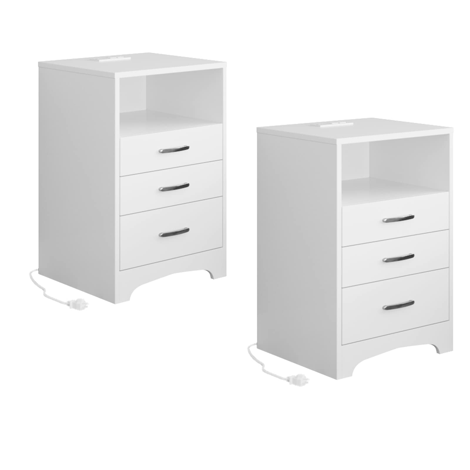 Fameill Nightstands Set of 2, Night Stand with Charging Station, Bed Side Table with Storage Cabinet, Farmhouse End Table for Living Room with USB Ports and Outlets, White