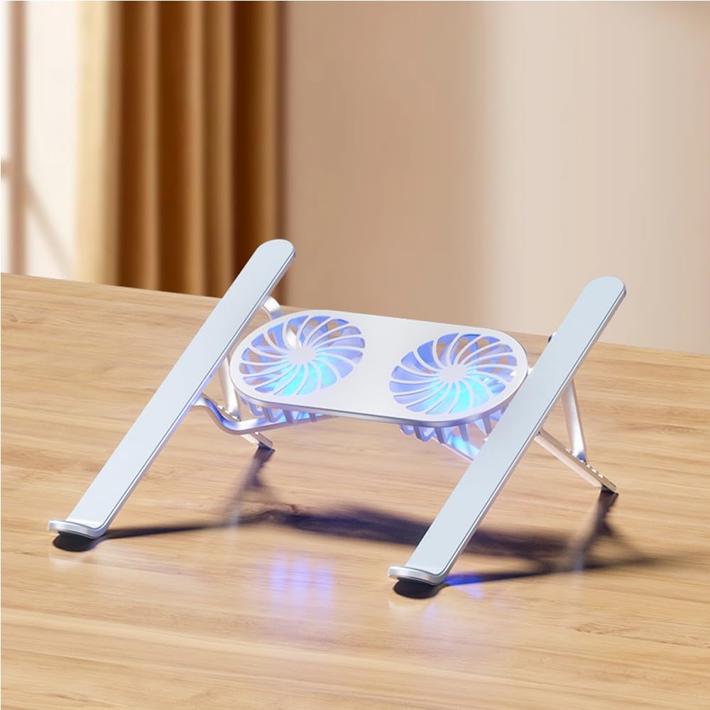 Mayten Laptop Stand with Cooling Fans, Aluminum Foldable and Portable Notebook Ventilated Cooling Stand Holder, Laptop Cooler with Low-Noise Fans Support Up to 17.3" Notebook Computer-Silver