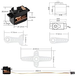 Plastic 【Excellent Quality Workmanship】:The 5G Micro Servo made with excellent plastic shell material (lightweight and fast heat dissipation) and high-precision plastic gear (prevent tooth sweeping and better muting effect) has a longer service life. 【High Performance Digital Standard】:The 5G Mini Servo with electronic burn protection can achieve Low Noise, Good Stability, Small Vibration, Smooth Operation, Excellent Linearity, Precision Control, Fast Response. 【Coreless Motor】:5G Digital Servo equipped with coreless motor and clutch protection function, which can provide better mute effect and quick response ability for the servo, greatly improving the accuracy of your RC models, and also greatly reducing the probability of servo damage. 【Widely Use 】:The 5G RC Servo is suitable for micro remote control models such as RC Aircraft,RC Helicopters,RC Drones,Fixed-Wing,RC Car SCX24,Boat,Toys,etc. 【Note】:In the frequency range of 500~2500us, the maximum controllable angle of the servo can be accurately achieved at 180 degrees, and the servo can achieve a control angle of 90 degrees under the control of a transmitter.