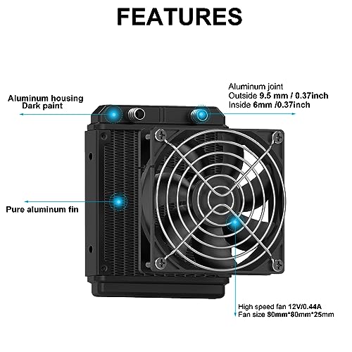 Nombre del producto: Radiador de enfriamiento por agua Especificaciones del producto: - Densidad de aletas: 18 líneas por pulgada - Color: Negro; Peso del producto: 300g - Tipo: Enfriamiento por agua; Material: Aluminio - Boca: 9.5 (D) mm; Número de modelo: 120mm; - Tamaño del tornillo más largo: 31 x 3 mm / 1.2'' x 0.12''(L*D); - Tamaño: 155 x 120 x 58 mm / 6.1'' x 4.7'' x 2.28''(L*W*H). - Cantidad de tubos: 12; Diámetro interno del tubo de ajuste: 8 -12mm / 0.3'' - 0.5'' - Diámetro externo del tubo de ajuste: 9.5 mm / 0.37''; Tamaño del tornillo más corto: 7 x 3 mm / 0.3'' x 0.12''(L*D) Características del producto: - Aletas de aluminio puro - Sellado de partes por soldadura bra sure como un todo - Tratamiento de superficie: pintura oscura - Junta: banda de acero inoxidable desechable - Proceso de sellado: soldadura al vacío de aluminio - Tipo de artículo: Enfriador de agua para radiador de computadora; Material: Metal - Se puede instalar un ventilador de 120mm, tamaño del agujero de montaje: 109.5(D)×109.5(W)mm ✔Optimizado para alto rendimiento a bajo costo, sin soldaduras débiles ni fugas. ✔ Adecuado para enfriamiento de CPU de computadora, convertidor de frecuencia industrial, enfriamiento de cabeza láser, evaporador de aire acondicionado y enfriamiento de gabinete de control industrial. Paquete incluido: 1 x Intercambiador de calor de aluminio Ventilador de alta velocidad NOTA: Los agujeros de tornillo debajo son tubos de canal, así que asegúrese de no usar tornillos largos, evitará fugas en la parte superior.- Se puede instalar un ventilador de 120mm, tamaño del agujero de montaje: 109.5(D)×109.5(W)mm