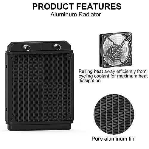 Radiador de enfriamiento por agua Clyxgs, radiador intercambiador de calor de aluminio de 12 tubos con ventilador para sistema de enfriamiento por agua de PC CPU, DC12V 120mm Negro