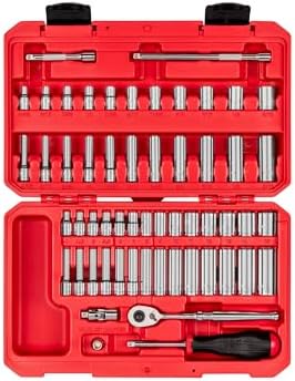 - Includes 11-pc. 1/4 in. drive shallow 12-point sockets: 5/32, 3/16, 7/32, 1/4, 9/32, 5/16, 11/32, 3/8, 7/16, 1/2, 9/16 in.; 11-pc. 1/4 in. drive deep 12-point sockets: 5/32, 3/16, 7/32, 1/4, 9/32, 5/16, 11/32, 3/8, 7/16, 1/2, 9/16 in.; 14-pc. 1/4 in. drive 12-point sockets: 4, 4.5, 5, 5.5, 6, 7, 8, 9, 10, 11, 12, 13, 14, 15 mm; 14-pc. 1/4 in. drive deep 12-point sockets: 4, 4.5, 5, 5.5, 6, 7, 8, 9, 10, 11, 12, 13, 14, 15 mm; 1-pc. 1/4 in. drive universal joint; 2-pc. 1/4 in. drive extensions: 3, 6 in.; 1-pc. 1/4 in. magnetic hex bit holder; 1-pc. 1/4 in. drive high-torque spinner handle; 1-pc. 1/4 in. drive quick-release ratchet; Carrying case
