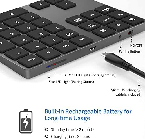 Bluetooth Number Pad, Wireless Numeric Keypad, USB-C Rechargeable External 34-Keys Numpad, Financial Data Entry Keyboard for iMac, MacBook Air/Pro, PC Desktop, Laptop Notebook