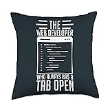 Web Developer Job Design Funny The Web Developer Has Always A Tab Open Throw Pillow, 18x18, Multicolor