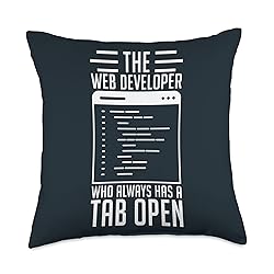 100% Polyester Web Developer Job Design with The Web Developer Has Always A Tab Open Saying. Web Developer Quote funny for a Web Developer with Humor. 100% spun-polyester fabric Double-sided print Filled with 100% polyester and sewn closed Individually cut and sewn by hand Spot clean/dry clean only