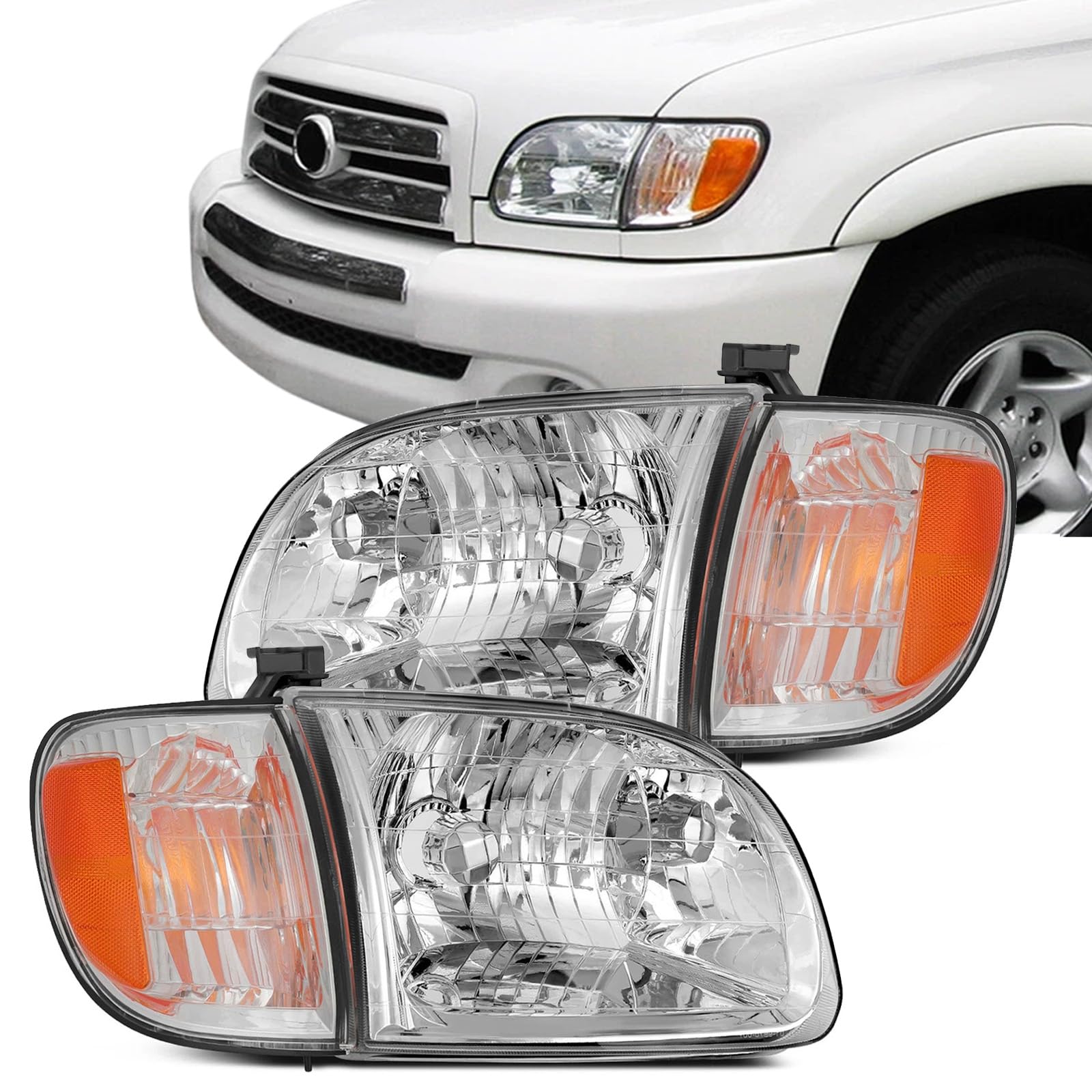 - Package Include: Total 4Pcs, 1xpair Headlights, 1xpair Bumper Lights(Passenger & Driver Side). Bulb not include