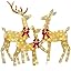 YULETIME 3-Piece Pre-lit 2D Christmas Reindeer Family, Lighted Glitter Christmas Deer Holiday Decoration with Warm White LED Lights