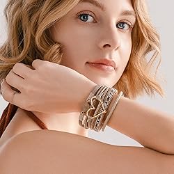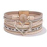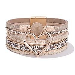Leather Band Bracelet: The multi strand bracelet is decorated with shinny cubic zirconia, heart and resin druzy quartz. Colorful Wrap Bracelet: Get the eye-catching heart bangle for your daily outfit. Magnetic Clasp: It is easy to put on and take off the statement bohemian bracelet with high quality magnetic closure. Dimensions: Length: 7.5 Inch, Width: 1.1 Inch. Perfect Meaningful Gift: An ideal present for birthdays, anniversaries, Valentine's Day, Christmas, beautifully packaged and ready to give.