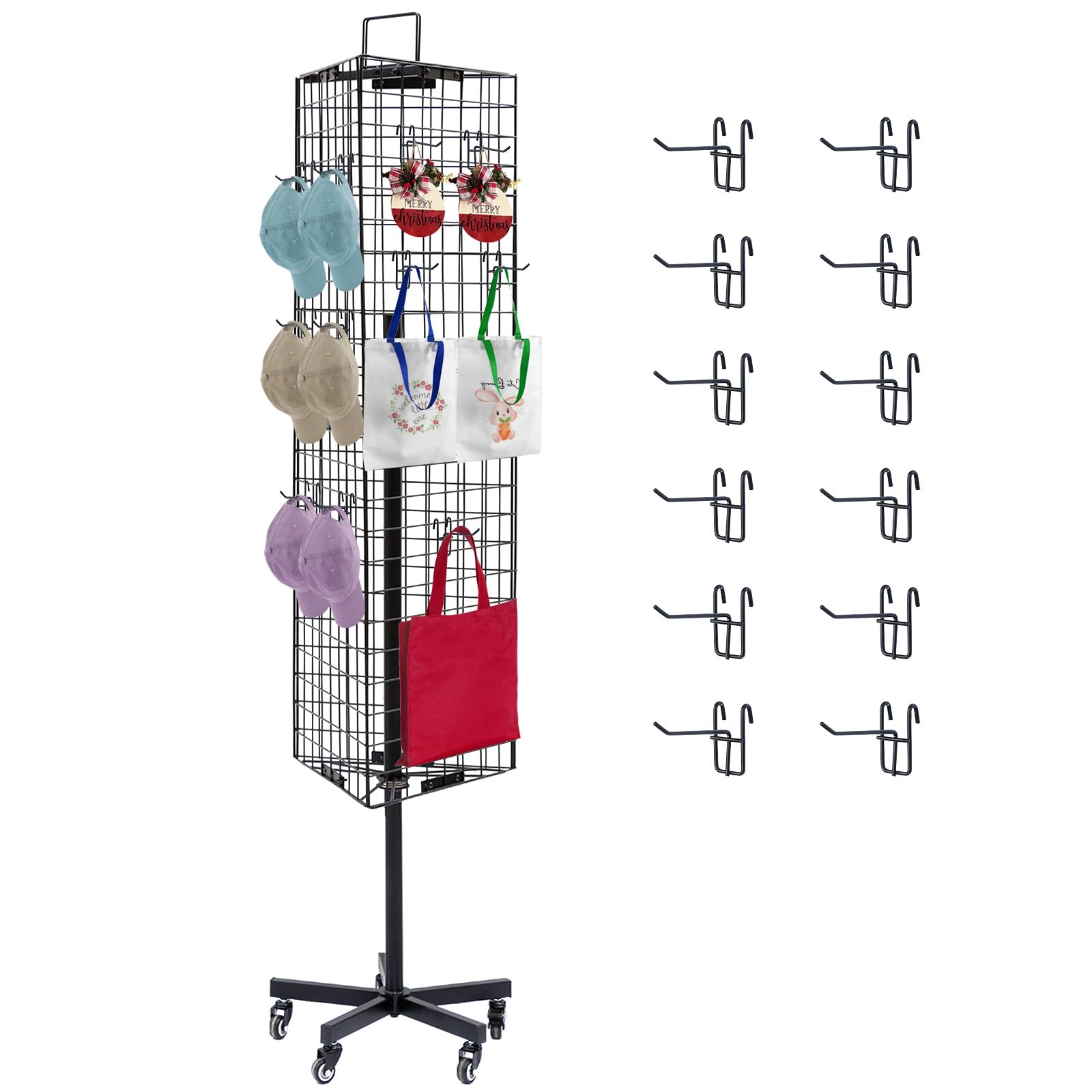 - Firm Construction: This gridwall display rack is very sturdy, the frame is made of thicker Iron, the metal wires space is small, more wires, more strong and durable. So it can hold heavy items such as house wares/sports equipment/clothing and so on