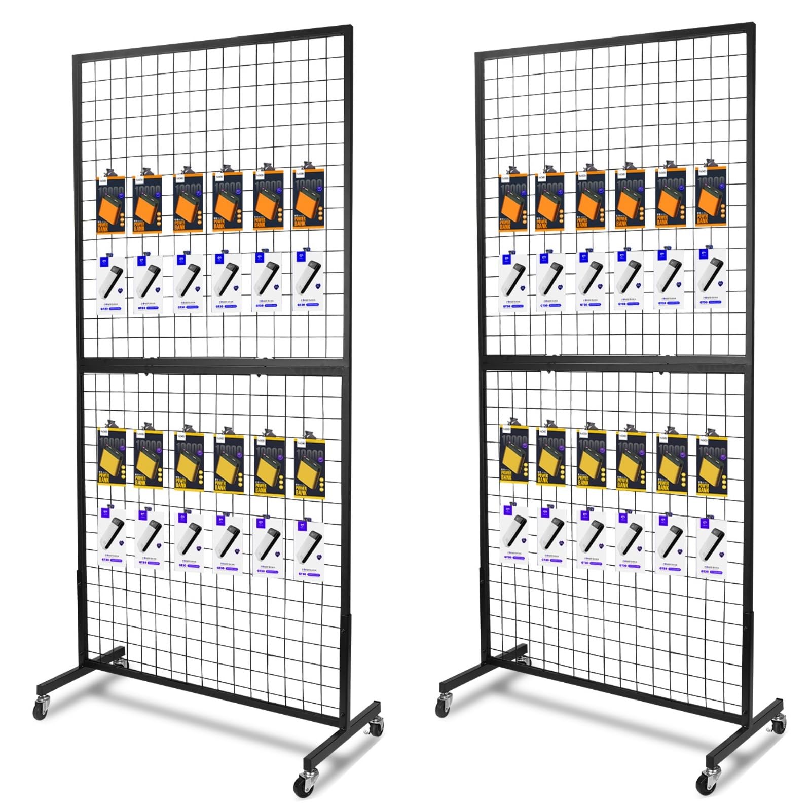 Grid Gondola Unit, 4pcs 2'x 5' Grid Wall Panels with Sturdy Frames, Gridwall Display Stand with Wheels, Craft Show Gridwall Display Rack, Art Display - Black