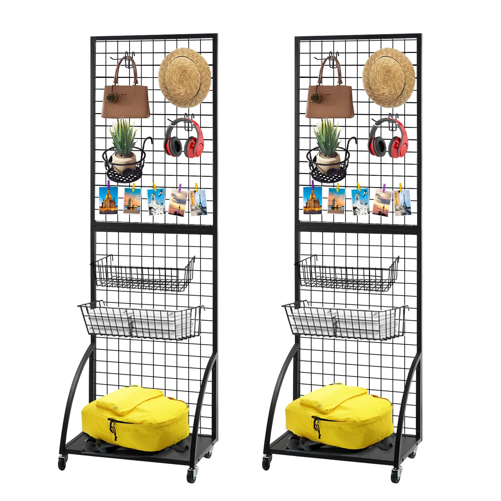 - Easy to Install: Only need twist the screws to tighten Wheel Legs to the grid wall panels, and then twist the screws to connect four gridwall panels together, when you don't want to use it, loose the srews, take apart four panels that's very easy to store. This complete floor standing gridwall display stand with wheels, which is easy to romove, great versatile display system.
