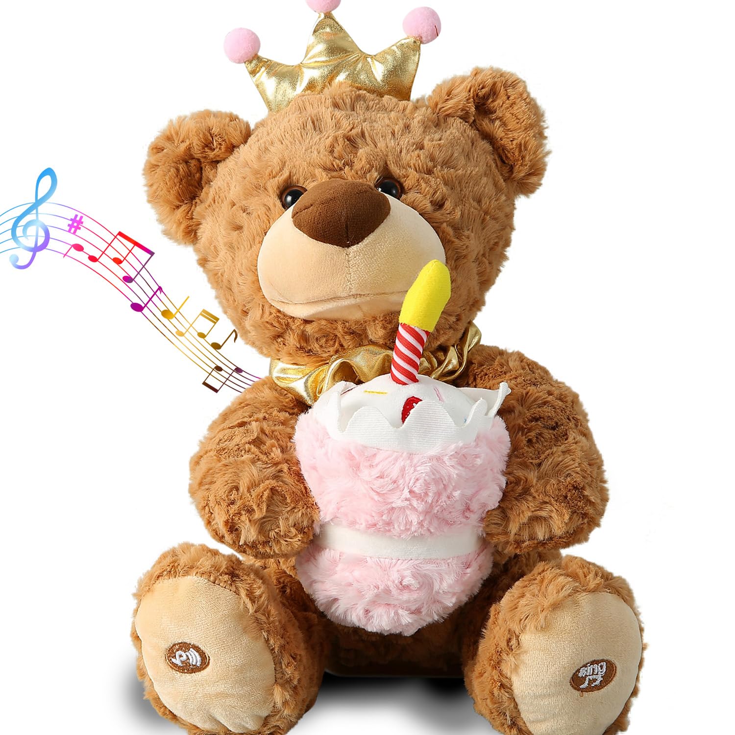 - Dancing Singing & Glowing Candle:Musical Teddy Bear Toy can send birthday wishes to children and sing happy birthday songs. Not only can it sing 6 songs and dance, but it also has a glowing candle to warm you up. This is a cute and funny stuffed bear.