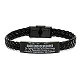 Back End Developer BRAIDED ROPE BRACELET - This classic braided rope bracelet is a perfect gift for Back End Developer. PERFECT GIFTS - This is a perfect gift for men, dads, husbands, boyfriends, or friends on Birthdays, Valentine's Day, Father's Day, Christmas, etc. Suitable for any occasion! ENGRAVED STAINLESS STEEL BRACELET - The bracelet is 20cm long, so it's suitable for men. The leather strap is black, so it matches most men's clothes and shoes. PRODUCT DETAILS – It's made of stainless steel and PU leather. The length can be adjusted if it's too long. SHIPPING - Engraved and shipped with love from Georgia, USA.