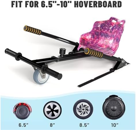 - WIDELY COMPATIBLE - SIMATE Go-kart also works with most other scooter. The adjustable nylon straps can fit the most common scooter wheel sizes from 6.5" to 10". Max load is determined by your self-balancing scooter. A scooter seat attachment can be a great gift to bring more enjoyment to kids and adults.