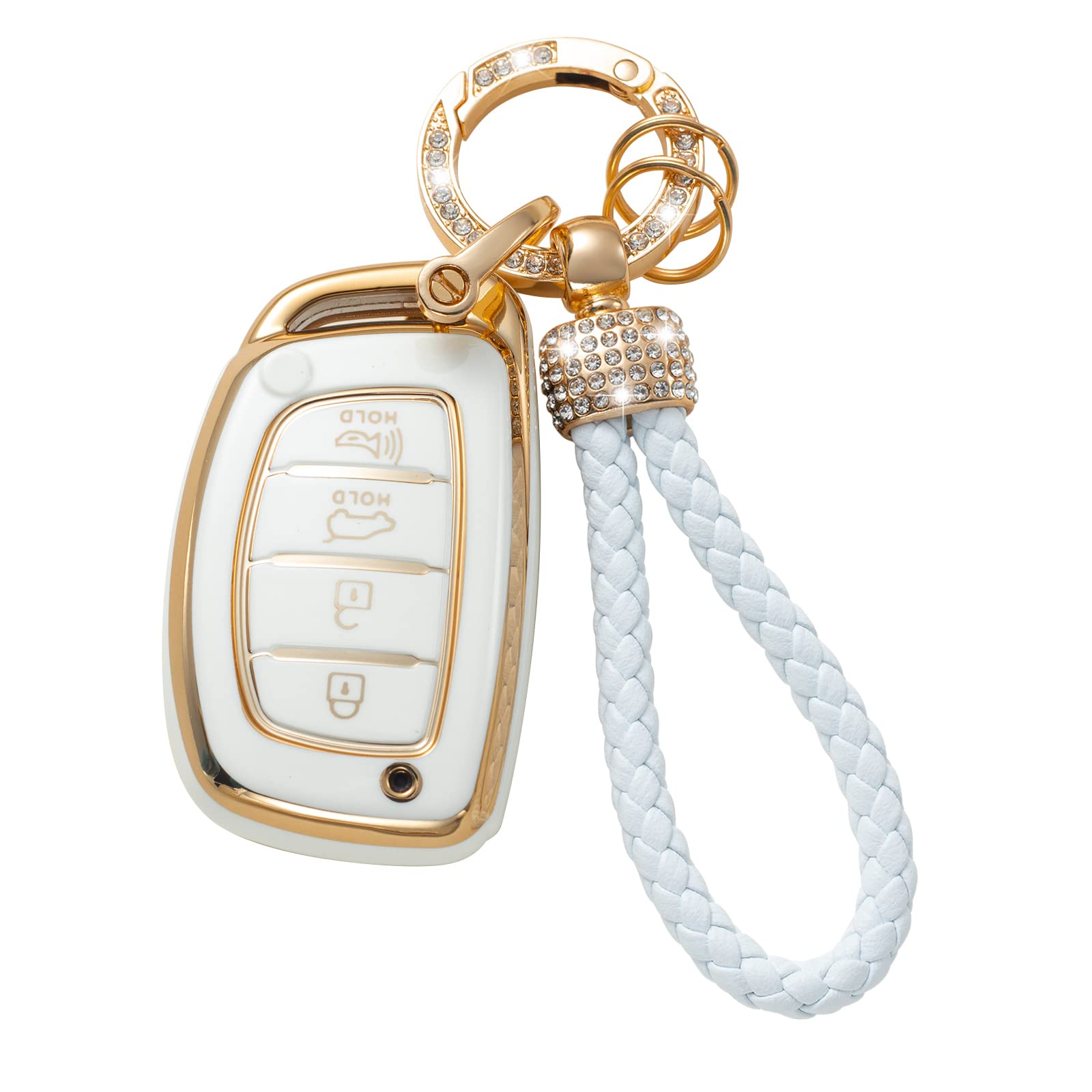【Stylish Keychain Accessories Set】: Include 1 Toyota key fob case,1 anti-lost D-buckle, 1 shiny metal clip with 2 rings, 1 hand-made woven lanyard and 1 screwdriver. Bling white gold keychain perfect for car, bicycle, home keys or as Birthday, Thanksgiving, Christmas gift to your friends and families.