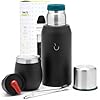 BALIBETOV Yerba Mate Kit - Includes 1 Mate Cup, 1 Straw, and 1 Thermal Flask with 2 Stoppers - The Stainless Steel Yerba Mate Gourd, Includes Lid (Black)