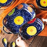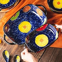 - ONECCI Retro pastoral style Ceramic Baking Dish Rectangular Bakeware Set Baking Pan, 2-piece Hand-painted Porcelain Baking pan with handle, Casserole Dish for Oven/Cooking/Kitchen