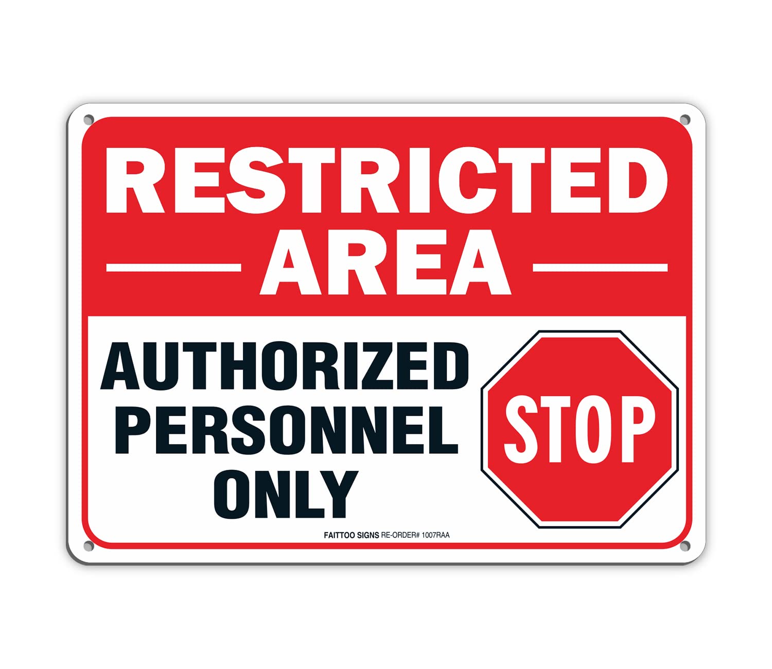 - COMPLIANT & ASSERTIVE: Ensure your facility adheres to legal and safety guidelines with our compliant restricted area authorized personnel only signs. Their assertive design leaves no room for misunderstandings.