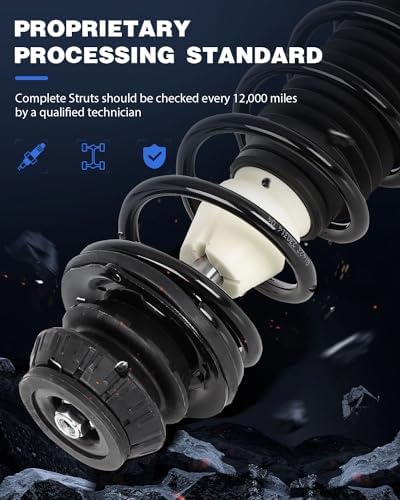 - ☀️QUALITY - ISO / TS16949 premium quality strut plus SAE9254 spring steel competitive springs plus special surface treatment combined complete strut with the quality of STRENGTH, TOUGHNESS and ANTI-CORROSION more tolerant to vibration and extreme temperature