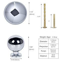 Excellent Solid Brass: Crafted from premium solid brass, this handle ensures durability and exudes an exceptional texture Exquisite Craftsmanship: Meticulously crafted and polished, the handle boasts a smooth and delicate surface, providing a comfortable and pleasant touch Wide Application: These polished chrome cabinet knobs can be perfect for a variety of locations, such as the kitchen, bathroom, or bedroom and can be easily installed on furniture, drawers, cabinets, wardrobes,closet Our Brass cabinet pulls have reasonable pricing and offer exceptional value, making them an ideal choice for purchasing high-quality home hardware products Size: Diameter = 1-1/8inch(28mm), Base = 11/16inch(18mm), Height=1-3/8inch(35mm) Customer Service: If you have any questions or need help, you can always contact our customer service team