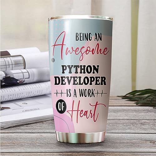Awesome Python Developer Tumbler Stainless Steel 20oz, Funny Python Developer Gifts Bulk For Birthday Christmas, Python Developer Gifts For Men Women Office Coworker Driking Coffee Cup Humor