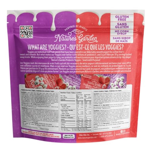 - NATURAL INGREDIENTS YOU CAN TRUST: Nature's Garden Probiotic Mixed Berry Yoggies are made from real, high-quality ingredients, including all-natural mixed berries and a creamy yogurt coating. Gluten-free, dye-free, and non-GMO, they're a snack you can feel good about.