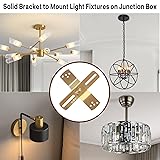 【180° ADJUSTABLE ANGLE】The flexibility allows you to customize the position and alignment of your light fixture for the perfect lighting setup. 【UNIVERSAL COMPATIBILITY】The mounting plates for 4" box is designed to fit a wide range of fixtures including wall lights, close to ceiling lights, chandeliers, and pendants. Please NOTE these may NOT strong enough for heavy fixtures like ceiling fans or ceiling fan lights. 【EASY INSTALLATION】Each pack includes all necessary screws and decorative nuts for a hassle-free installation process. 【STABLE AND SECURE】The high-quality mounting plates provide a sturdy base, preventing any wobbling or shaking of your light fixture. 【DURABLE AND RELIABLE】Made from durable materials, these mounting brackets are built to last and withstand regular use. 【PACKAGE INCLUDES】2 x mounting crossbars; 4 x screws; 2 x ground screws; 3 x wiring nuts, 4 x black acorn cap nuts, 4 x black washer.