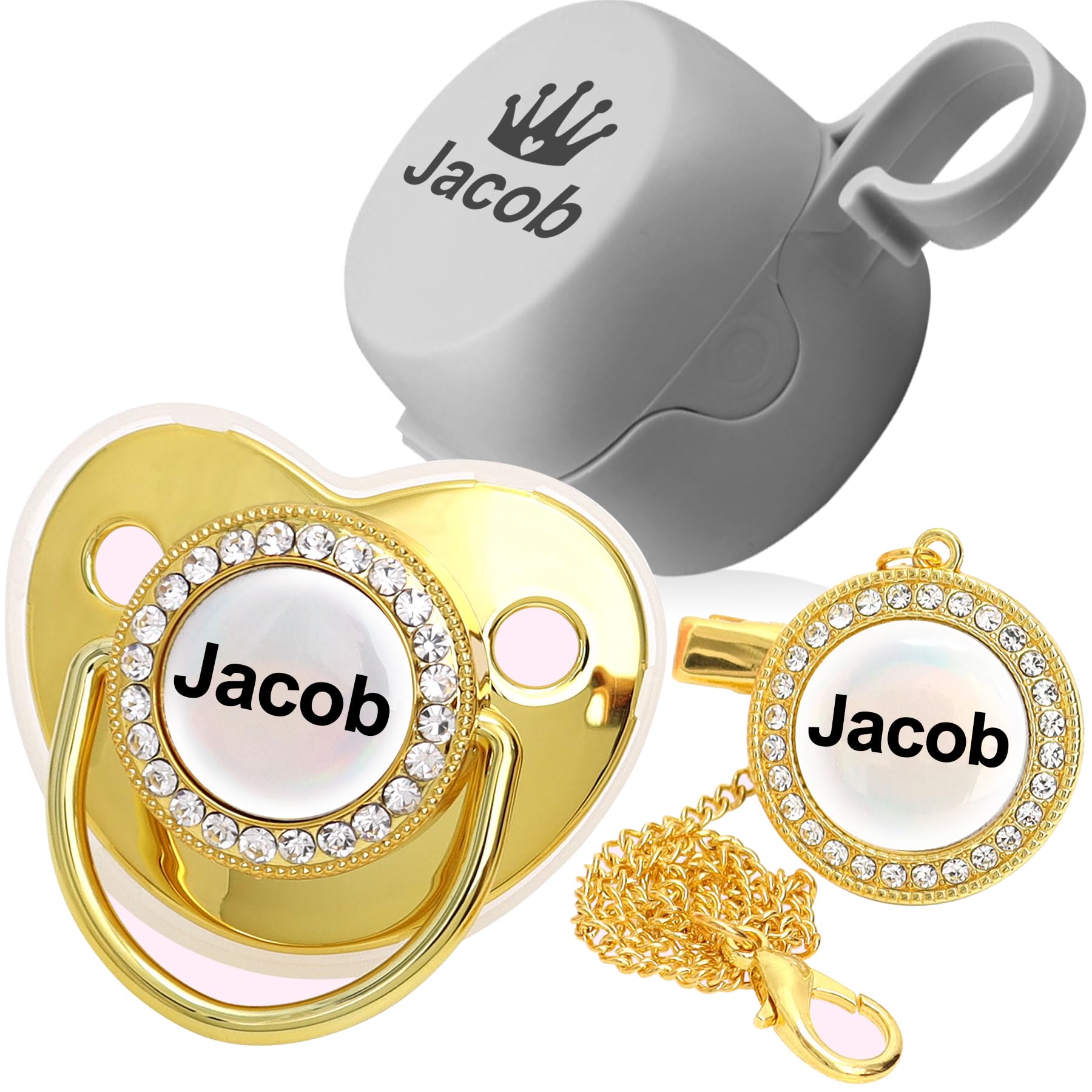 Personalized Pacifier And Pacifier Clip Set With Name,Custom Pacifier,Custom Name & Chain,Silicone Teethers Toys, Luxurious Ideal Gift For Newborns (Golden)